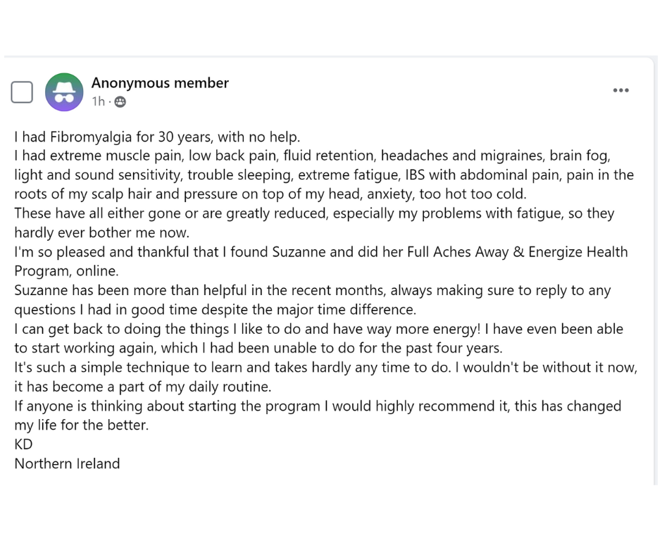 I help people suffering from Fibromyalgia, ME/CFS or Long COVID reduce their pain, fatigue & foggy thinking have more energy to enjoy life again.
